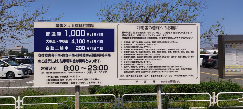 山梨を7時過ぎくらいに出発し、途中で入場券を購入、高速のパーキングで休憩をとりつつ約3時間ほどで幕張メッセに到着。この周辺は渋滞もあったが以外にすんなりと到着できた。